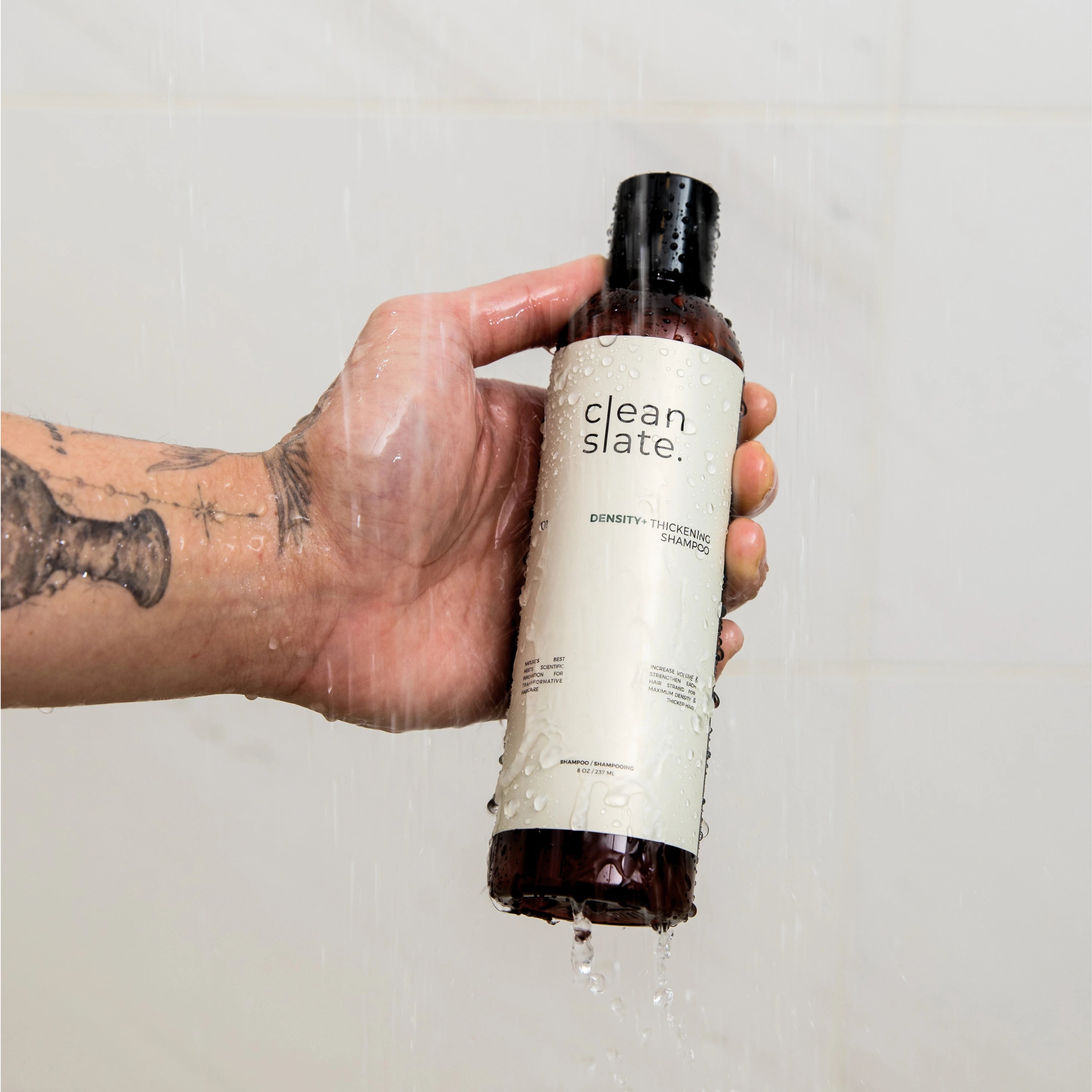 Massage into wet hair and scalp. Density+ expands the strand from within to restore thickness and volume — with visible fullness from the first wash. Rinse thoroughly.
